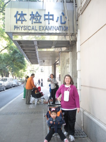 After boarding the bus we headed for Shamian Island. There we took Desi's Visa photo, rented a stroller and had her medical exam. She didn't cry at all during the whole thing. The only real "oops" was when they stuck the needle in her arm for the TB test. She spilled her Cheerios all over the floor. Poor thing:-( She still didn't cry though. Made it through like a champ.